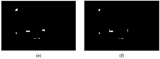 Difference between ground truth and the estimated map. Here we compare the predefined areas and the plotted path, where the white pixels are the wrong plotted grids. (a) Result of EKF with 1 IMU and 1 GPS, (b) Result of UKF with 1 IMU and 1 GPS, (c) Result of UKF with 1 IMU and 2 GPS are the Friction map results, and (d) Result of EKF with 1 IMU and 1 GPS, (e) Result of UKF with 1 IMU and 1 GPS, (f) Result of UKF with 1 IMU and 2 GPS are the road grade map results. UKF shows more accurate positioning capabilities than EKF, and with two GPS fused in the Kalman filter, the wrong located grid is less than with just one GPS signal.