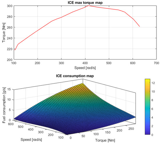 Figure 2 shows the maximum torque map and the consumption map of the ICE engine adopted for the simulation.