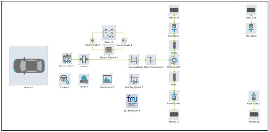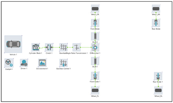The ICE vehicle model was developed in AVL CruiseMTM and the functional schemes are shown in Figure 7.