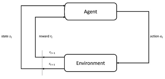 An agent can be viewed as a software component that is capable of performing actions within an environment to achieve goals predefined by a user [20]. Similar to training a biological being, training an agent in the context of RL can be viewed as goal-directed learning based on trial and error [21], where the environment rewards or punishes the agent depending on the actions taken. A Markov decision process (MDP) can model such a decision problem. This forms the basis of an RL problem [22]. In particular, combining different deep learning techniques, such as using deep neural networks [23] and RL, has led to breakthroughs in the past decade [24,25,26]. The advantages of using RL are that in an environment that has a high-dimensional state space, error-prone manual feature selection becomes obsolete [27,28]. Specifically, RL agents have been developed in recent years that have found game-like solutions to master Atari games that beat highly skilled poker players [29,30,31]. In this context, the work of DeepMind research director David Silver´s team of developers stands out as groundbreaking. Their self-learning RL agents AlphaGo and AlphaStar were able to defeat the Go world champion Lee Sedol and to master the strategy game StarCraft II well [32].