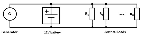 In conventional vehicles, the alternator maintains the voltage in the 12-volt electrical system. If the alternator current is no longer sufficient—due, for example, to idling or because of a low engine speed—for maintaining sufficient supply to all consumers, this results in the vehicle electrical system voltage dropping to the battery voltage level. This means that the battery is supplying power to the consumers. As a result, the battery is responsible for attenuating voltage peaks in the vehicle electrical system voltage to protect sensitive electronic and electrical components [6]. The main risk is that the battery voltage is insufficient for maintaining safety-critical functions in extreme situations. The overlapping of comfort consumers and safety-critical high-power consumers can cause voltage dips that drop to 10V or less [7]. This problem is particularly important in autonomous vehicles [5].