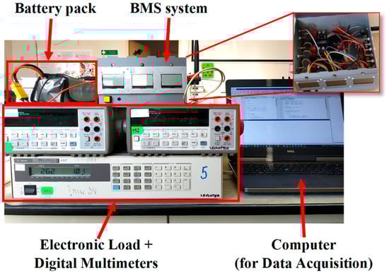 Currently, the most popular battery type in portable electronics and EVs is the Lithium battery, especially the Lithium-ion battery [,,]. By means of high cell voltage and high energy density, an individual Lithium cell can be enough to power a portable device such as a telephone, digital camera, etc., for a long enough operation time. However, battery packs are necessary for applications that require higher supply voltage, higher discharge current, and more energy [,,,]. In an ideal case, all cells of a battery pack must be identical. This requirement is impossible in practice due to different conditions during production, storage, as well as operation.