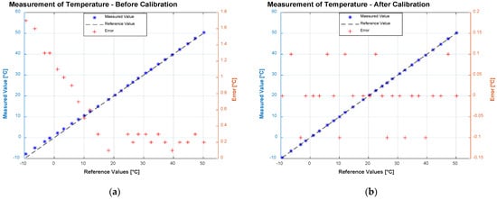 From the viewpoint of accuracy, a large number of techniques such as a digital filter or a sensor fusion can be applied to the program to reduce the noise of measurement. For example, an extended Kalman filter can be used to predict and filtrate the measuring errors, as presented in []. The errors can be compensated by using comfortable correction coefficients in the software program.