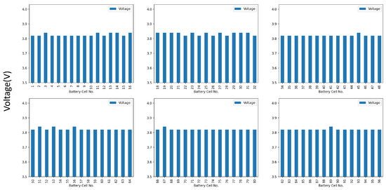 Instantaneous voltages of all 96 battery cells in the Hyundai Ioniq Battery Electric.