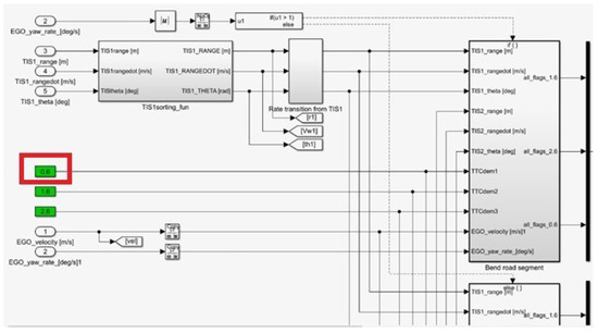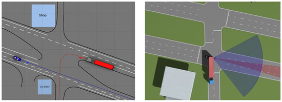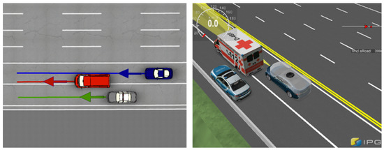 This study used PreScan [34] and Car Maker simulation software to create scenarios [35] in which a vehicle with sensors can relate to a virtual environment. Furthermore, the vehicle can respond and react to the sensors and receive data by using control algorithms that have to be implemented in Matlab Simulink [36,37]. We examined cases where the operation of the AEBS (Advanced Emergency Braking System) function could be linked to critical traffic situations.