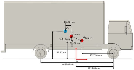 In Figure 3 is reported the positions of the vehicle center of gravity to highlight the differences between the Empty and Laden vehicle configurations. When loading the truck, the Laden center of gravity tends to move behind the Empty center of gravity and at a greater height from the ground. In Figure 3, it is also reported the position of the center of pressure for the case of a fully exposed vehicle moving at 65 km/h with 25 m/s of crosswind.