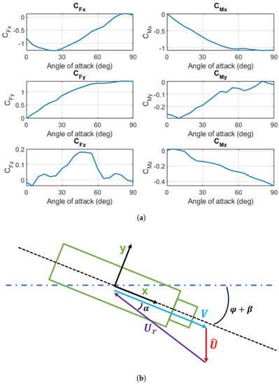 The classic quasi-static approach has been used in the formulation of the aerodynamic forces and moments as can be seen from Equation (1).