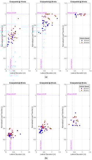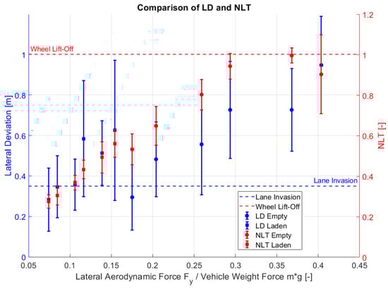 - As the aerodynamic load increases (so that the normalized load transfer approaches ), it becomes more difficult to control the vehicle. Therefore, a higher dispersion in the lane deviation error bar can be observed.