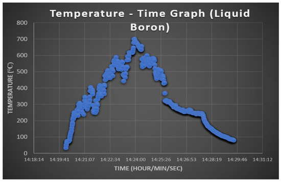 In the Exp.SB and Exp.LB experiments, boron-based fire suppressants were used. Boron is used in many different fields. Boron production from boron minerals in the form of ores requires special processes. Boron is generally found in nature as borate salts or boric acid [10].