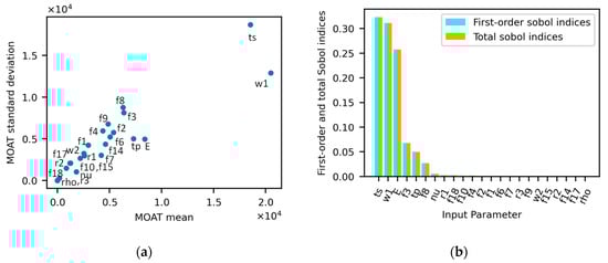 Parameter sensitivity plots: (a) MOAT method; (b) Sobol method.