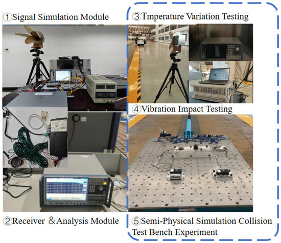Prior to the experimental analysis, the signal generation component of the simulation model was integrated into different environmental chambers to control the environmental factors. The temperature outside the environmental chamber was kept stable, and the system data were observed using a signal analyzer [37]. Simultaneously, a remote data acquisition system recorded the GNSS signal data. Once the satellite signal generation system reached the specified environmental conditions and remained relatively stable in the environmental chamber, the AECS was triggered, and data collection began, including the environmental temperature, impact amplitude, and timestamps of various components.