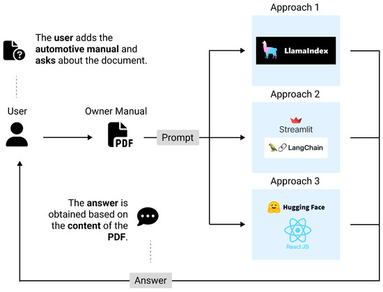 In this context, this work proposes a comprehensive exploration of LLMs as tools used to access relevant data in conventional vehicle manuals. Through a comparative analysis between available tools, this article aims to evaluate the effectiveness of different approaches based on LLMs, considering aspects such as accuracy of responses, cost efficiency, and overall user experience. The LLM approaches selected for evaluation were chosen to highlight the interpretation of technical documentation, the extraction of pertinent details, and the presentation of simplified access to information. Figure 1 provides a visual representation of these solutions in action.