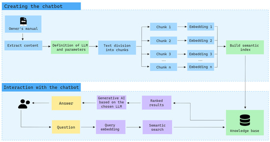 The incorporation of LLMs in the automotive industry may play a particularly significant role in the context of conventional vehicle manuals [6]. With the continuous evolution of conventional vehicles (in opposition to the expected new generation of driverless electric vehicles), which has incorporated increasingly advanced systems and diversified functionalities, the efficient dissemination of information emerges as a pressing challenge [14,15]. Technical manuals represent the main repositories of knowledge about the general operation of the vehicles, guiding users in various tasks, from operation to maintenance and troubleshooting of vehicles [16,17]. However, traditional methods of disseminating information often fail to meet the varying needs of users, resulting in inefficiencies and difficulties in accessing relevant information [5]. In this context, LLMs have demonstrated an ability to navigate the complexities of technical documentation, extracting insights and providing users with simplified access to essential information [13].