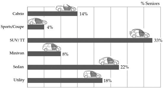 We concluded that seniors are more likely to try taller vehicle typologies, such as SUVs—especially crossovers, minivans, sedan models (five-seater city cars, family-type), and mid-high range (which tend to have higher cabins), as well as small Jeeps (although to a lesser extent than the types of vehicles mentioned above).