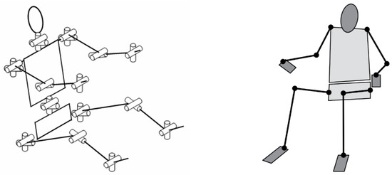 Humanoid model: (left) framework used by Ouidir et al. [20], Ait El Menceur et al. [32,41], and others; (right) model adopted in the present study.
