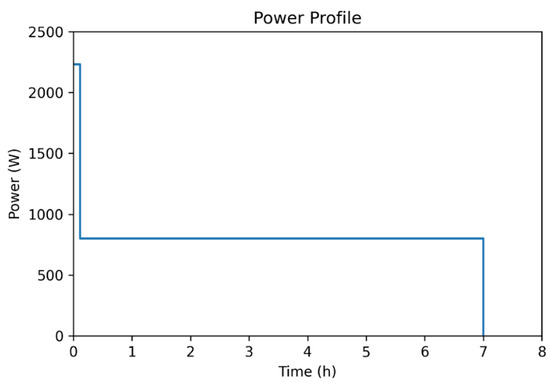 As the application does not require any complex electronics, the power profile should be simple with no cyclic characteristics. The power profile for a mission duration of 7 h (25,200 s) is illustrated in Figure 4.