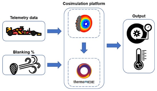 The sections in this paper cover the following topics: In Section 2, we discuss previous research related to estimating brake temperatures with considerations for blanking, evaluating tire temperatures while taking into account brake heat, and simulation platforms designed to improve air intake configurations. Section 4 offers a detailed explanation of the models developed and the co-simulation framework. Section 5 introduces a comprehensive set of tests, considering different vehicle speeds, brake blanking levels, and the sensor setup used for different vehicles. In Section 6, we discuss the simulation results and validate them through real-world experiments with a racing reference vehicle. Lastly, in Section 7, we conclude this scholarly presentation with final remarks and a plan for future research.