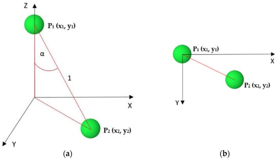 The angle error α can be calculated with the following Formula (3), if the distance between the two center points is regarded to be 1 unit, and and .
