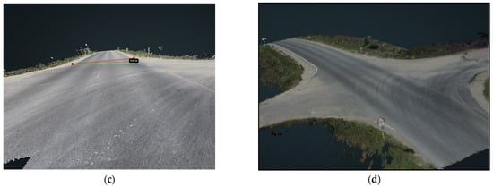 In the next step of the experiment, Block 1 images and Block 2 images taken during the same mission were combined. Figure 12 shows the point cloud and the corresponding camera images. Block 2 images were also processed separately for further analysis. However, as those did not include the whole of the road section discussed in the present study, the results of the circular missions alone (i.e., Block 2) are not discussed here.