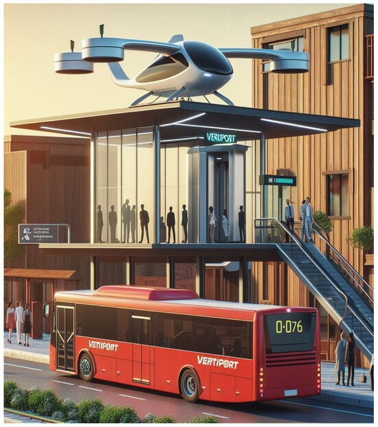 Figure 1 shows an original illustration from the authors for a concept that integrates a vertiport with a bus stop.