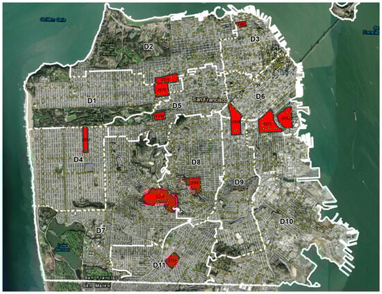 - SFGov. San Francisco Open Data. Available online: https://datasf.org/opendata/ (accessed on 4 July 2023).
