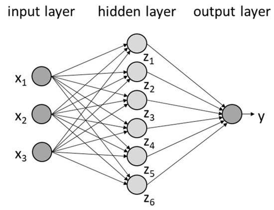 In the context of machine learning, ANNs are trained using data and a computer algorithm learns correlations inside the data [27]. The structure of an ANN is inspired by the biological nervous system and consists of neurons arranged in several layers [28]. The neurons are always connected to all neurons of the next layer and process information. The topology of a typical ANN is shown schematically in Figure 7.