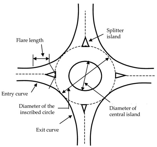 Characteristics of four-legged roundabouts (adapted from [27]).