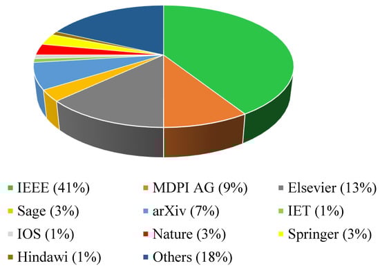In summary, the total number of papers that are investigated in this survey is 68, and the percentage covering each publisher is depicted in Figure 1.