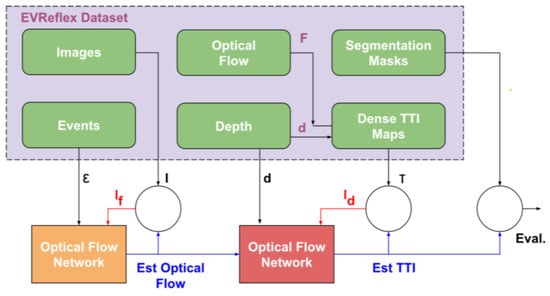 As proposed in [14], the integration of events and depth data allows for better collision avoidance strategies. In simple static scenes, depth sensors are accurate, but they interfere with fast-moving objects. However, cameras do not work well on texture-free surfaces, since they lack a certain temporal resolution and dynamic range. The strengths of each sensor method are balanced by the weaknesses of the other. This article presents an approach to estimating the impact time for each pixel that overcomes these issues. It was demonstrated that the resulting time-to-impact (TTI) maps can guide a collision control policy better than those based on background segmentation. A schematic view of the proposed obstacle avoidance system in [14] is presented in Figure 3.