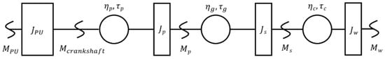 Since all the electrical components have been modeled as ideal, a single value of efficiency has been chosen to represent all the losses of the electrical system of the PU. This value represents the round-trip efficiency, so it has been applied to the energy stored in the accumulator and to the energy retrieved from the accumulator.