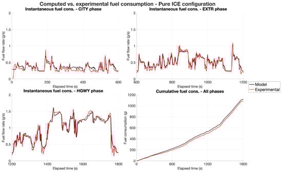 For the aim of this article, the comparison between the different phases of the WMTC in different configurations needs to be analyzed in terms of fuel consumption. In particular, each configuration has been compared to the baseline ICE configuration, evaluating the fuel consumption reduction with the proposed MHEV architecture.