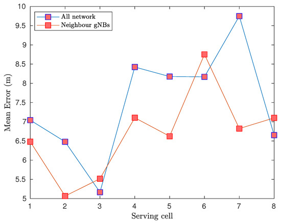 - Bandwidth availability: Large bandwidth enables higher multipath resolution, translated to higher accuracy for TOA-based positioning. LTE offers a maximum bandwidth of 20 MHz, resulting in expected position errors above 63 m on 95% of the cases [27]. As shown in Table 1, the 5G network will enable bandwidths up to 100 and 400 MHz in the FR1 and FR2 bands, respectively, which can be increased up to 1 GHz using carrier aggregation techniques.