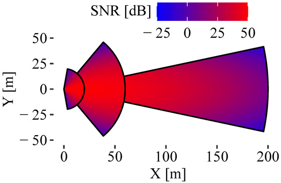 We used a similar approach to [11] to model a static SNR configuration for a radar sensor model depending on the azimuth angle and the distance r. The SNR characteristic of a radar system is defined by a uni- or bivariate polynomial of any degree in Cartesian or polar coordinates, e.g., the following equation shows a bivariate polynomial with a total degree of 2: