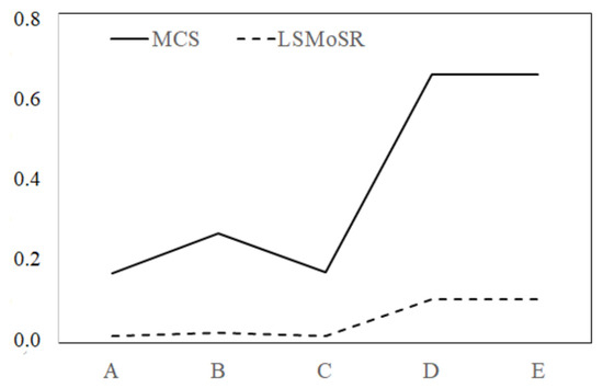 The author worked out the adaptation of the linear mathematical diagnostic modeling methodology for setting up the Linear Sensitivity Model of System Reliability (LSMoSR) [14]. Table 4 and Figure 4 display the correlation coefficients of MCS and—for comparison—the linearized sensitivity coefficient of the LSMoSR.