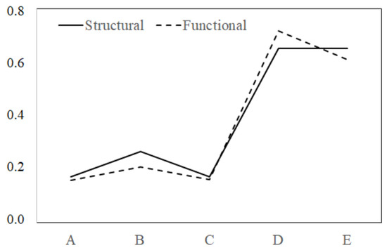 The “structural sensitivity” of a technical system’s reliability refers to the effect of the reliability of a given system element from a structural point of view [17]. The value of its coefficient is determined only by localization in the system structure—not by the reliability value—of the given component.