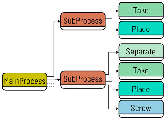 The main process is a set of sub-processes required to complete an assembly to the point where another assembly sequence can be started. Depending on the components used and the joining technology employed, the main processes are supplemented by sub-processes and handling steps. An example is shown in Figure 11.