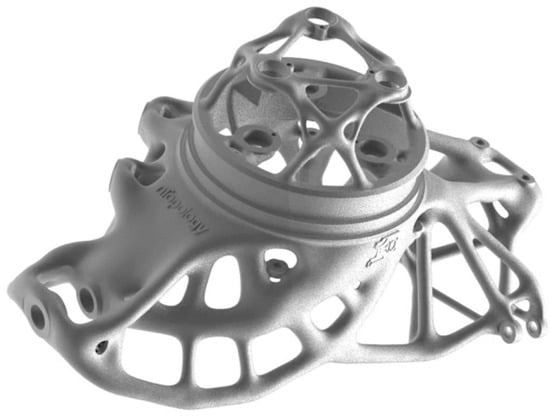 - Clare Scott. 3D Printing an Improved DMLS Automotive Component Using Topology Optimization and DfAM. 3DPrint.com|The Voice of 3D Printing/Additive Manufacturing. 2018. Available online: https://3dprint.com/230626/3d-printing-an-improved-automotive-component/ (accessed on 2 March 2025).
