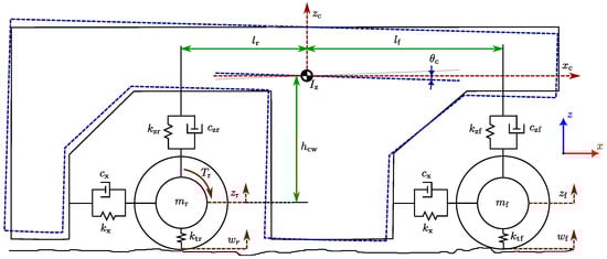 - Zhiqiang, G.; Wei, W.; Shihua, Y. Longitudinal-vertical dynamics of wheeled vehicle under off-road conditions. Veh. Syst. Dyn. 2022, 60, 470–490. [Google Scholar] [CrossRef]