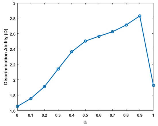 To select the best combination of averages and standard deviations in the cost function, several weights have been evaluated as depicted in Figure 12. The discrimination ability is based on a distance D defined as follows.