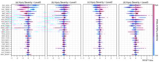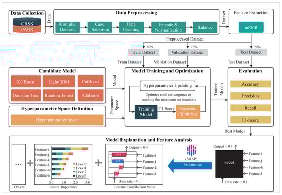 - Dong, S.; Khattak, A.; Ullah, I.; Zhou, J.; Hussain, A. Predicting and analyzing road traffic injury severity using boosting-based ensemble learning models with SHAPley Additive exPlanations. Int. J. Environ. Res. Public Health 2022, 19, 2925. [Google Scholar] [CrossRef]