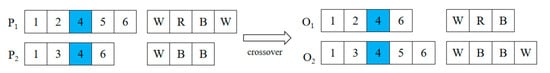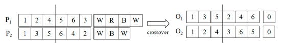 In the variable-length genetic algorithm, a traditional single-point crossover strategy is utilized. There are two scenarios for the chromosomes selected for crossover: first, when the two parent chromosomes share the same nodes (excluding the starting and ending nodes); and second, when the parent chromosomes have different nodes. To address these cases, a single-node crossover method is designed to perform the crossover operation on the first segment of the chromosome.