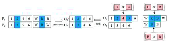 After completing the crossover on the first segment of the chromosome, the transport modes for the unchanged gene segments are retained in the second segment. For the segments that have been altered, transport modes between the nodes are randomly selected to generate the corresponding second segment.