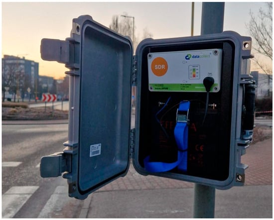 The SDR is a modern radar system capable of automated traffic data collection. It functions similarly to the Sierzega device but offers enhanced flexibility in data processing and filtering. The SDR was installed at a height of 1.6 m and positioned at a 45-degree angle on the same pole as the Sierzega device.