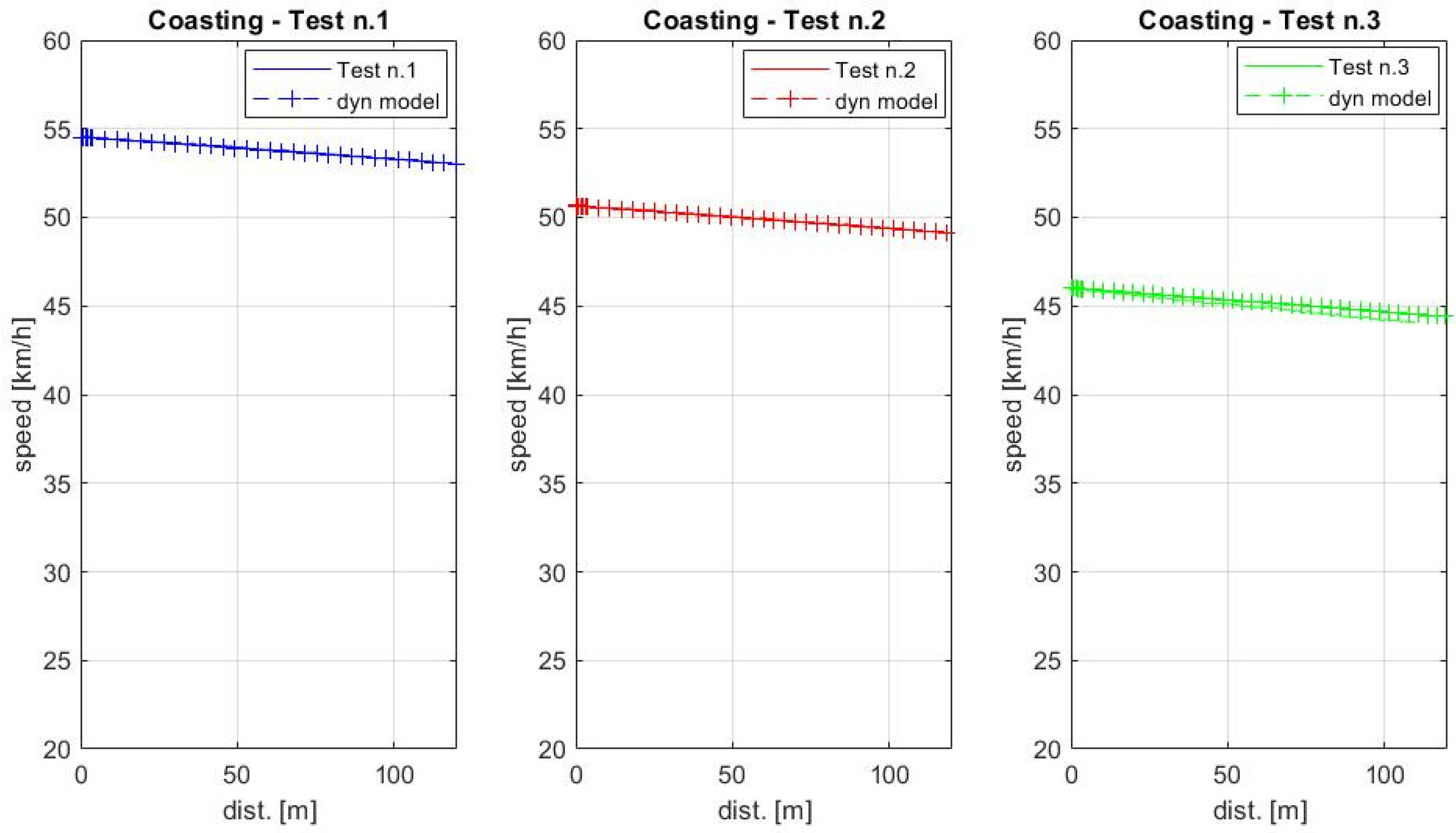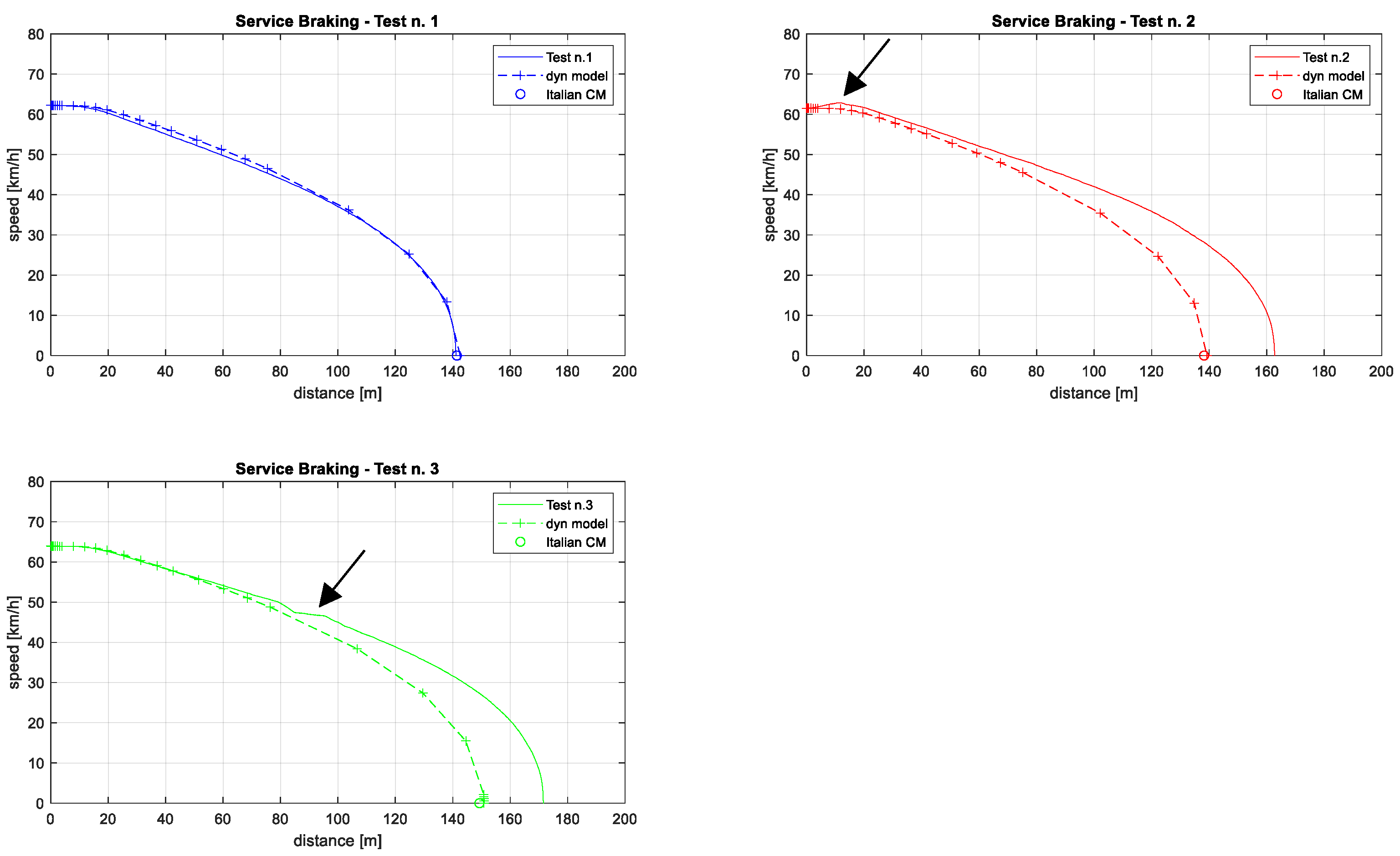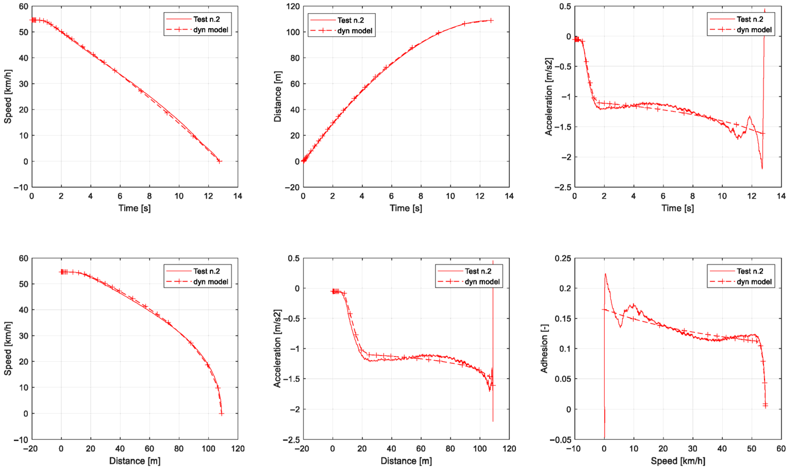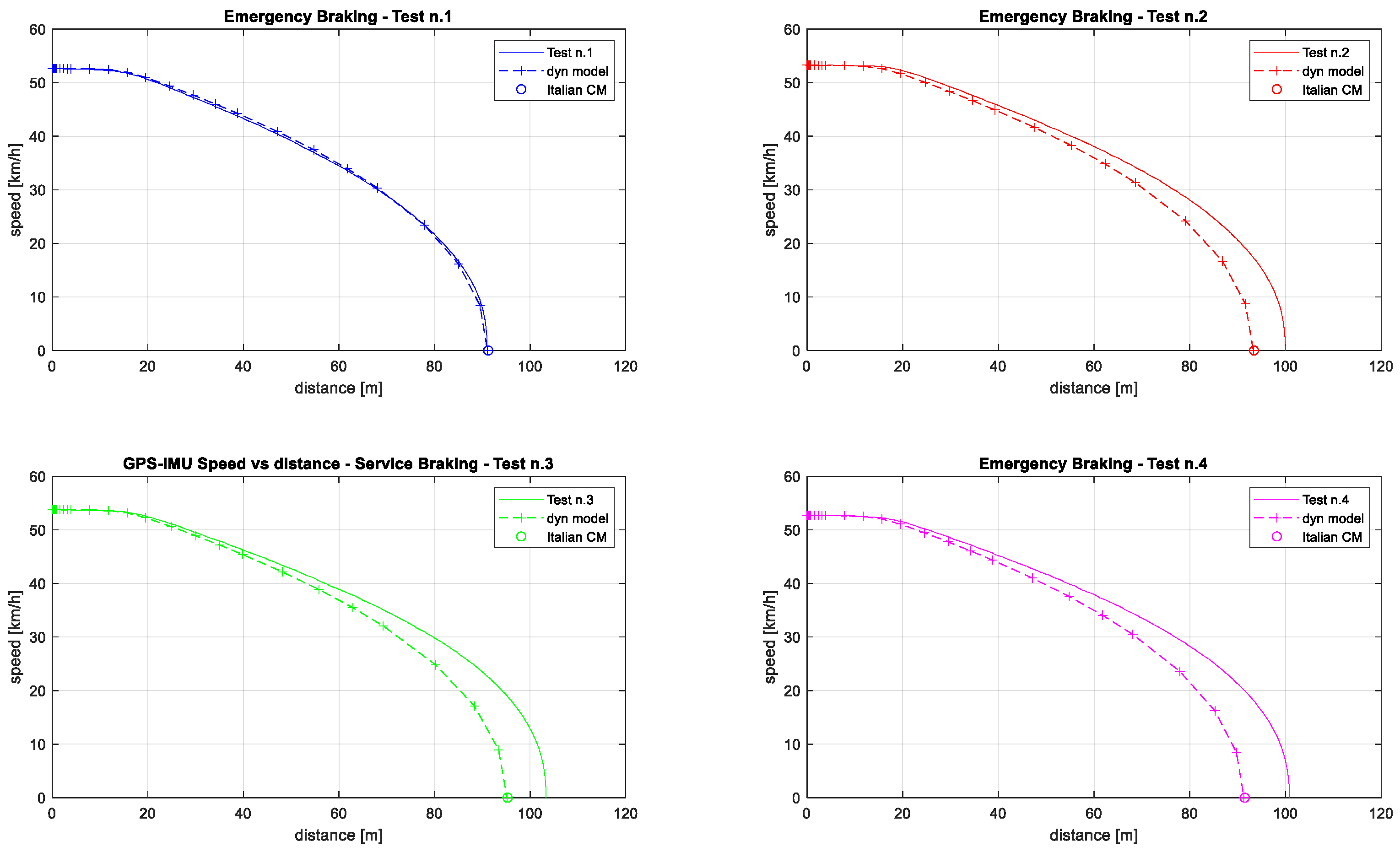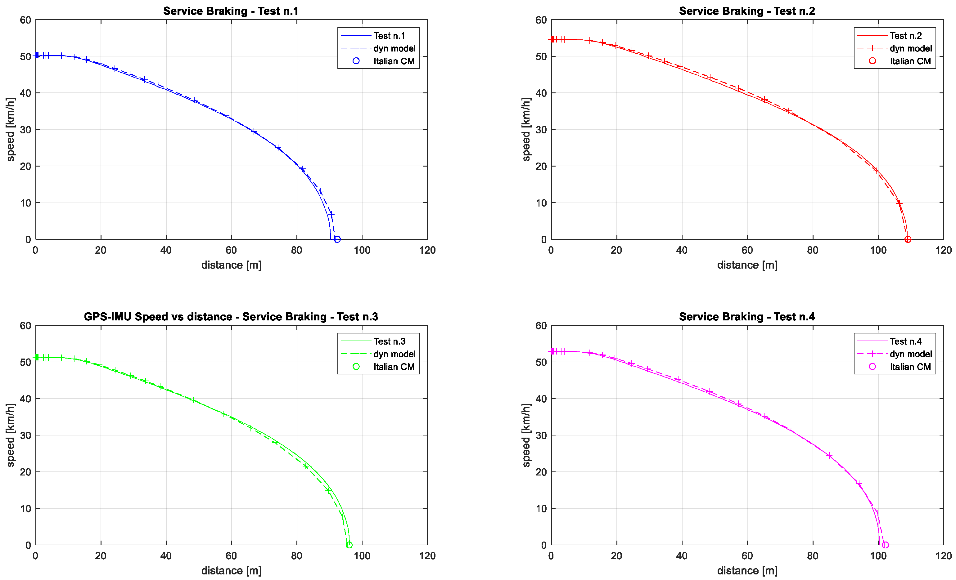 4.6. Validation of the Dynamics Model for Service Braking and Comparison to Empirical Formulas