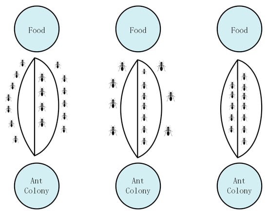 As shown in the Figure 2, the Ant Colony Optimization (ACO) algorithm achieves collaboration through ants releasing and sensing pheromones. In the initial phase, ants randomly select paths to explore. As the search progresses, the frequency of ants traveling along shorter paths gradually increases, enhancing the pheromone concentration on these paths. This, in turn, attracts more ants to choose these routes, creating a positive feedback mechanism. Eventually, the pheromone accumulates on the optimal path, completing the path optimization process.