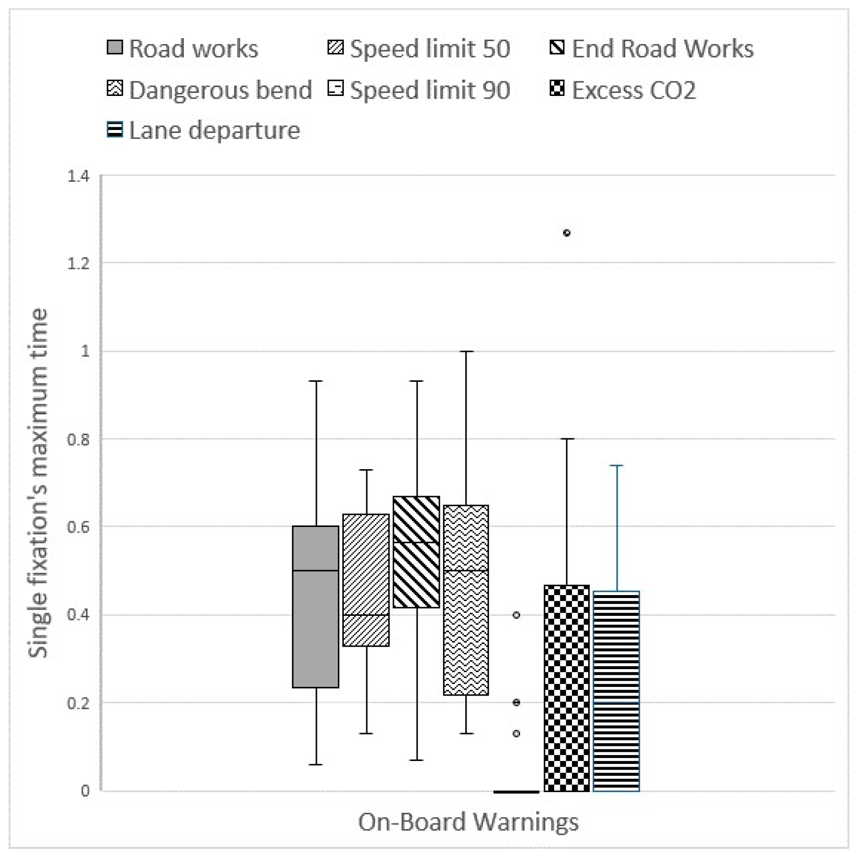 Figure 6. Box-and-whiskers plot for the maximum time per fixation.
