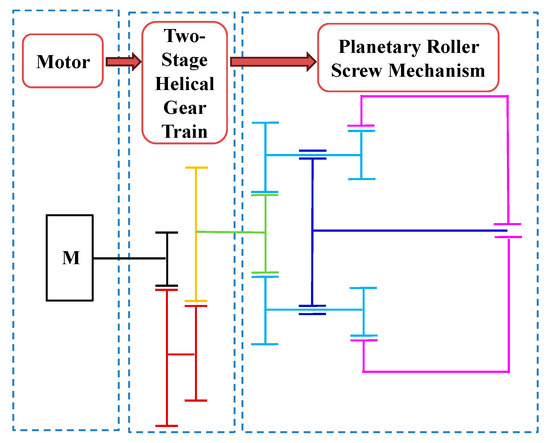 - Ma, S.; Cai, W.; Wu, L.; Liu, G.; Peng, C. Modelling of transmission accuracy of a planetary roller screw mechanism considering errors and elastic deformations. Mech. Mach. Theory 2019, 134, 151–168. [Google Scholar]