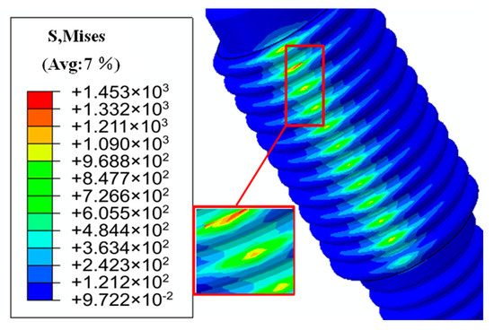- Chen, S. Research on Thread Contact Parameters and Contact Intensity Analysis of Planetary Roller Screw Pair; Nanjing University of Science and Technology: Nanjing, China, 2019. [Google Scholar]