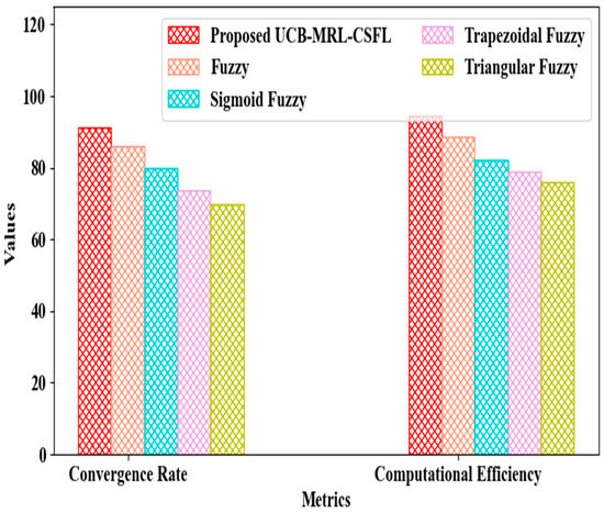 UCB-MRL-CSFL’s efficiency in TSO with regard to the convergence rate and computational efficiency is depicted in Figure 5. As per the figure, the UCB-MRL-CSFL attains a higher convergence rate (91.26%) and computational efficiency (94.45%) than the other conventional methodologies. Yet the prevailing approaches face difficulty in converging optimal solutions due to the non-stationary environment and interactions between multiple agents, attaining lower convergence rates and computational efficiency. Therefore, the proposed framework outperforms the other conventional TSO methodologies.