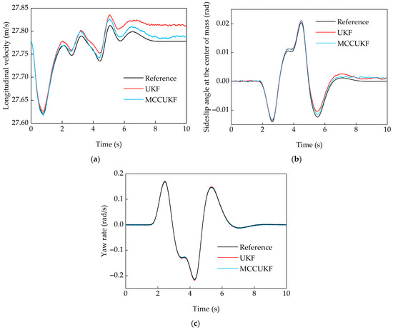 - Zhang, F.; Feng, J.; Qi, D.; Liu, Y.; Shao, W.; Qi, J.; Lin, Y. Joint estimation of vehicle state and parameter based on maximum correntropy adaptive unscented Kalman filter. Int. J. Automot. Technol. 2023, 24, 1553–1566. [Google Scholar] [CrossRef]